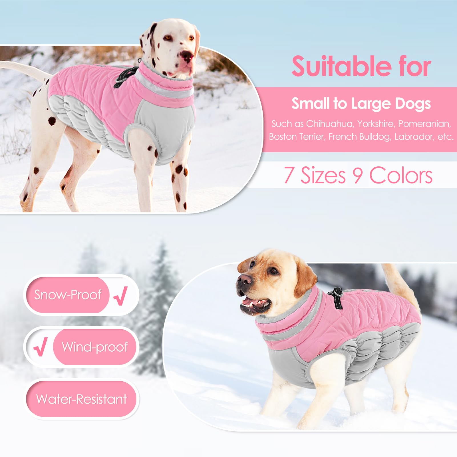 - FIT FOR MOST SIZE DOGS: Please use soft tape to measure your dog and select the size of our dog winter coat based on the Chest Girth (the widest part of ribcage) and Back Length (base of neck to base of tail). If Between Sizes, please Select One Size Up. Fit for most breeds small dogs, medium dogs, and large dogs
