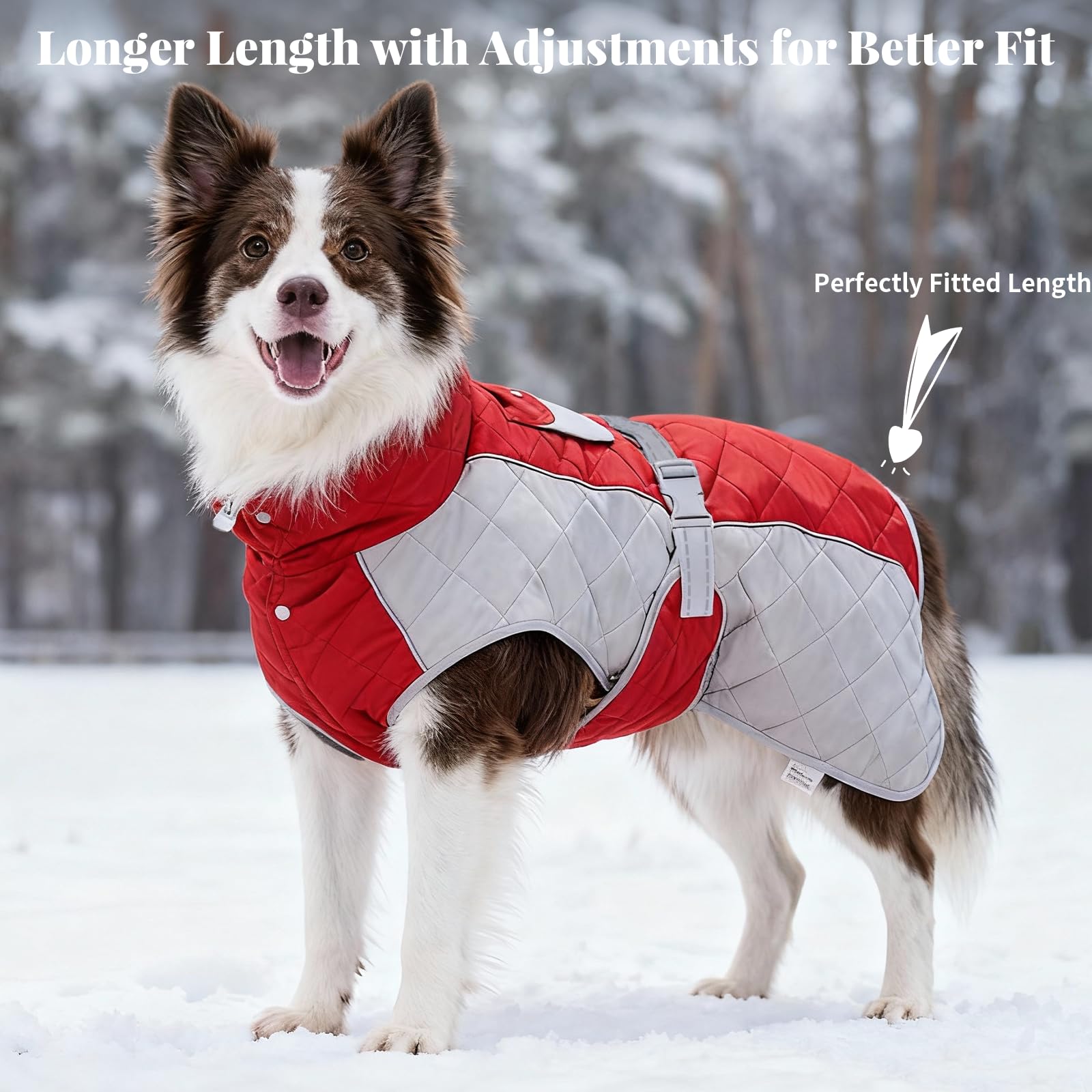 - 【Reflective Design】Reflective piping on all sides enhances nighttime visibility. Quick-snap neck opening and stretchable leg holes make dressing wiggly dogs effortless. Plush-lined high collar blocks wind while preventing chafing.