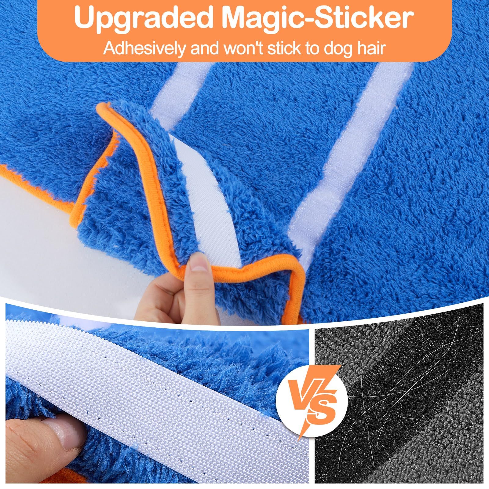 - Adjustable: Our dog towels are made of magic-sticker,it will not easy to stick dog hair, besides the sticker can make it easier for dogs to put on and take off the pet bathrobe, adjust the tightness, and make the dog bath towel more fit and comfortable