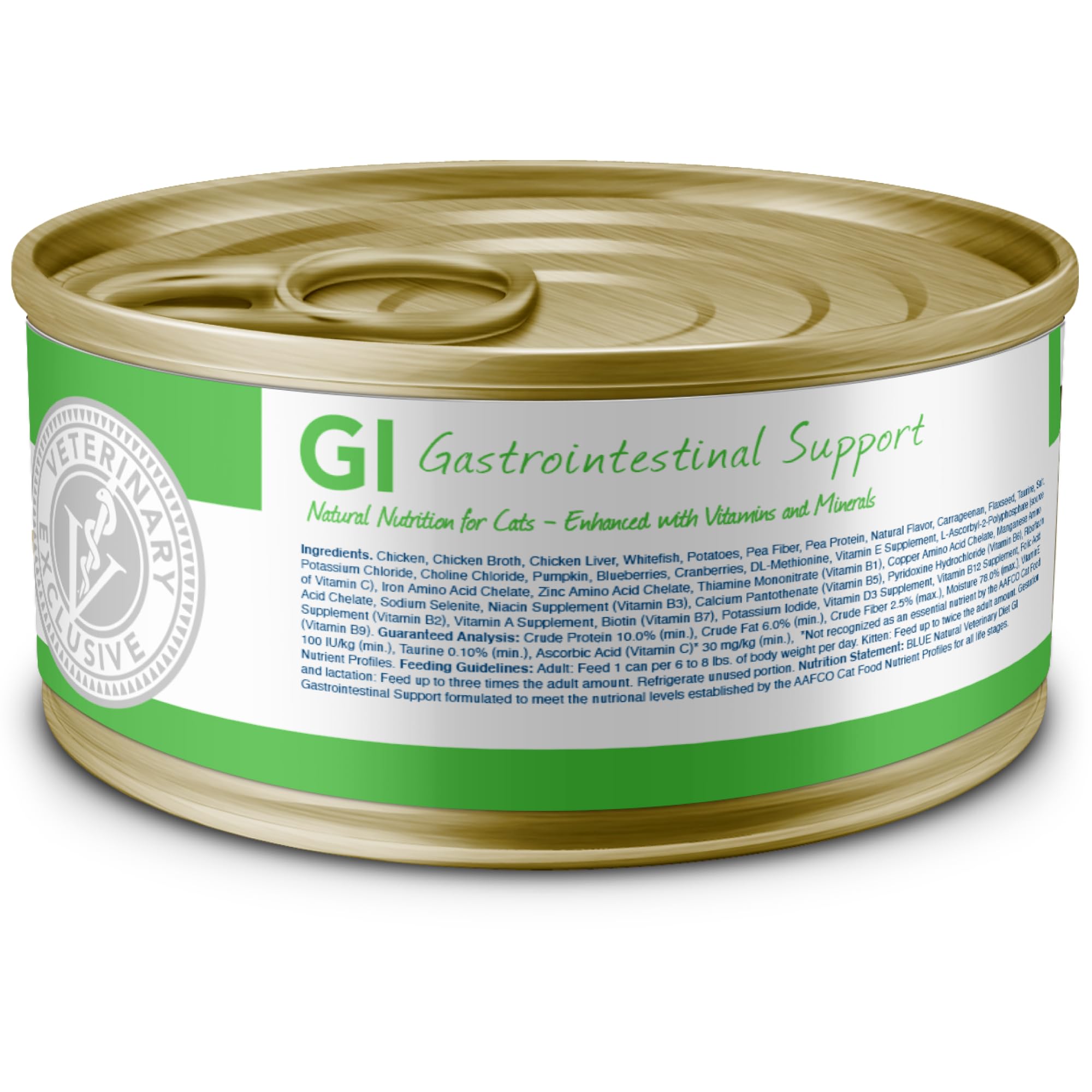 - Contains: Twenty-four (24) 5.5-oz. cans of BLUE Natural Veterinary Diet GI Gastrointestinal Support Wet Cat Food, Chicken Recipe