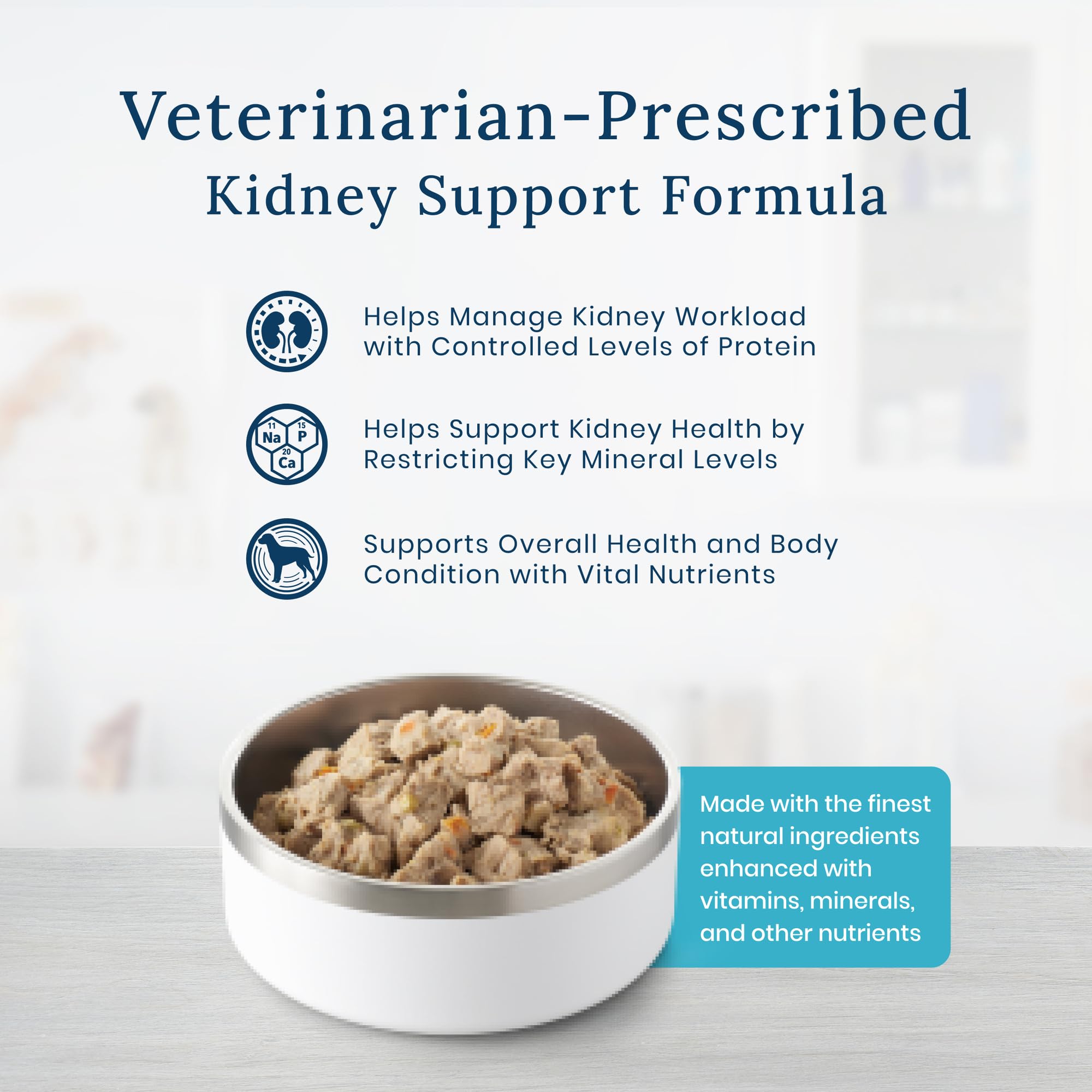 Details: Does your dog need a diet to help support healthy kidney function? BLUE Natural Veterinary Diet™ KS Kidney Support wet dog food is a natural dog food enhanced with vitamins, minerals and other nutrients that features controlled protein and mineral levels to support your dog’s kidney health. This kidney care dog food starts with delicious, real chicken and contains vital nutrients to help support your dog’s overall health.