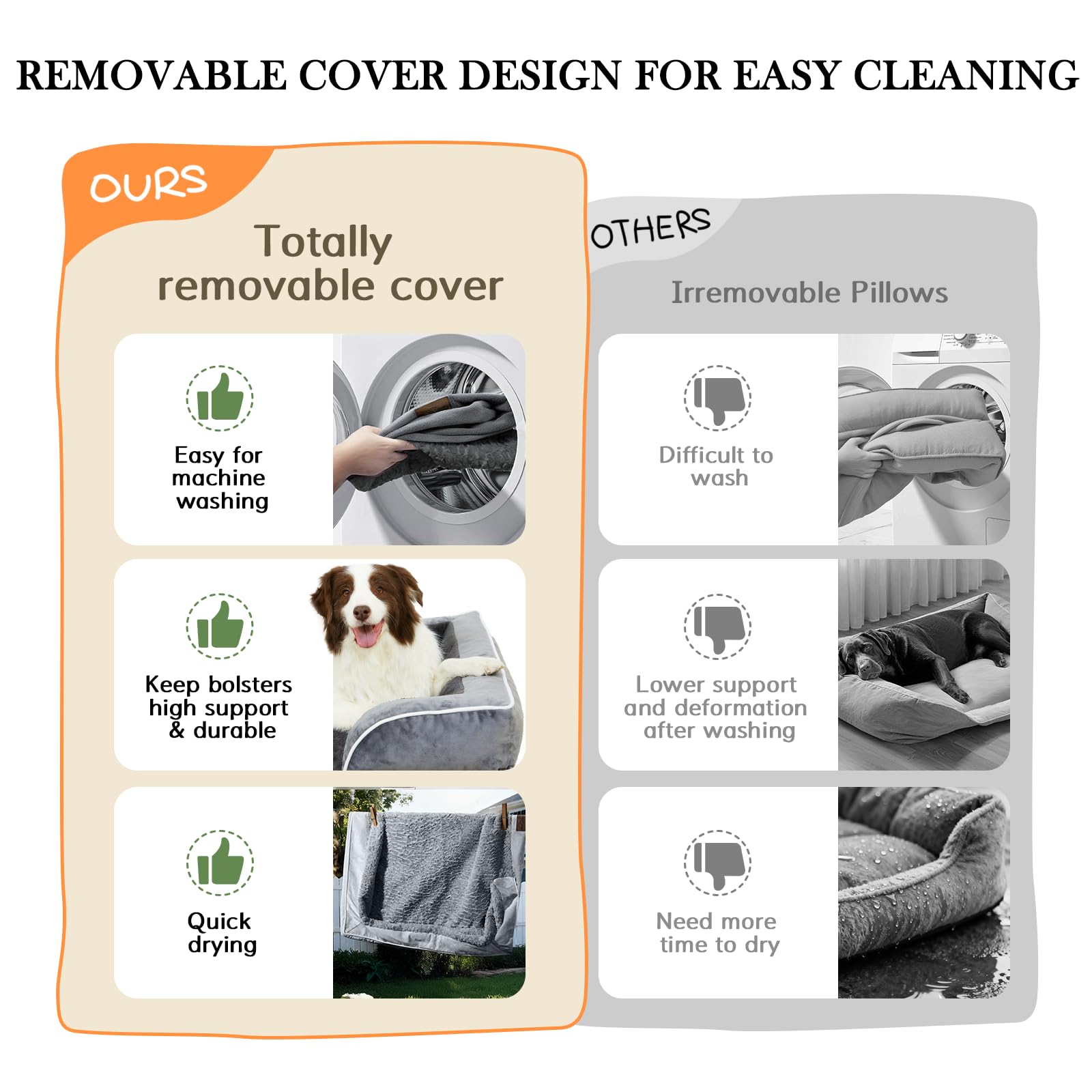 - WATERPROOF & EASY TO CLEAN: Don’t worry about getting the orthopedic foam dog bed wet, the washable dog bed cover has a lining on the back to keep off liquid leakage and protect the foam. Removable cover with zipper support machine washing and low-temperature drying.