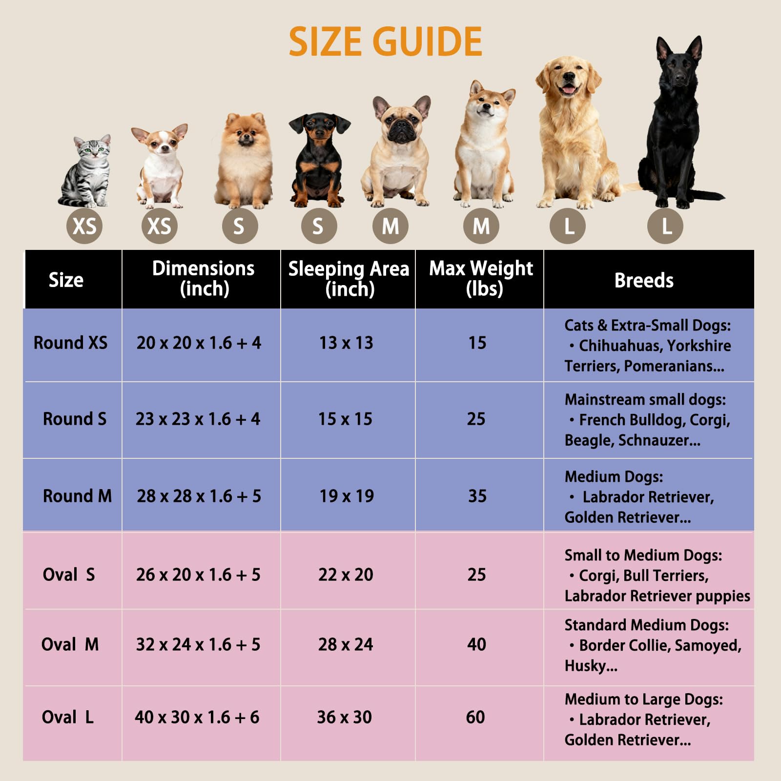 - Perfect Sizing & Non-Slip Safety: Perfectly Fits up to 15/25/35/45/75 lbs pets, your small, medium, large or XL-sized cats & breed (e.g., Bulldogs, Corgis, Spaniels, Dachshunds, Poodles, etc.). The sturdy, non-slip bottom with rubberized dots grips hardwood or tile floors, preventing the bed from sliding during play or rest, ensuring your pet’s safety and stability.