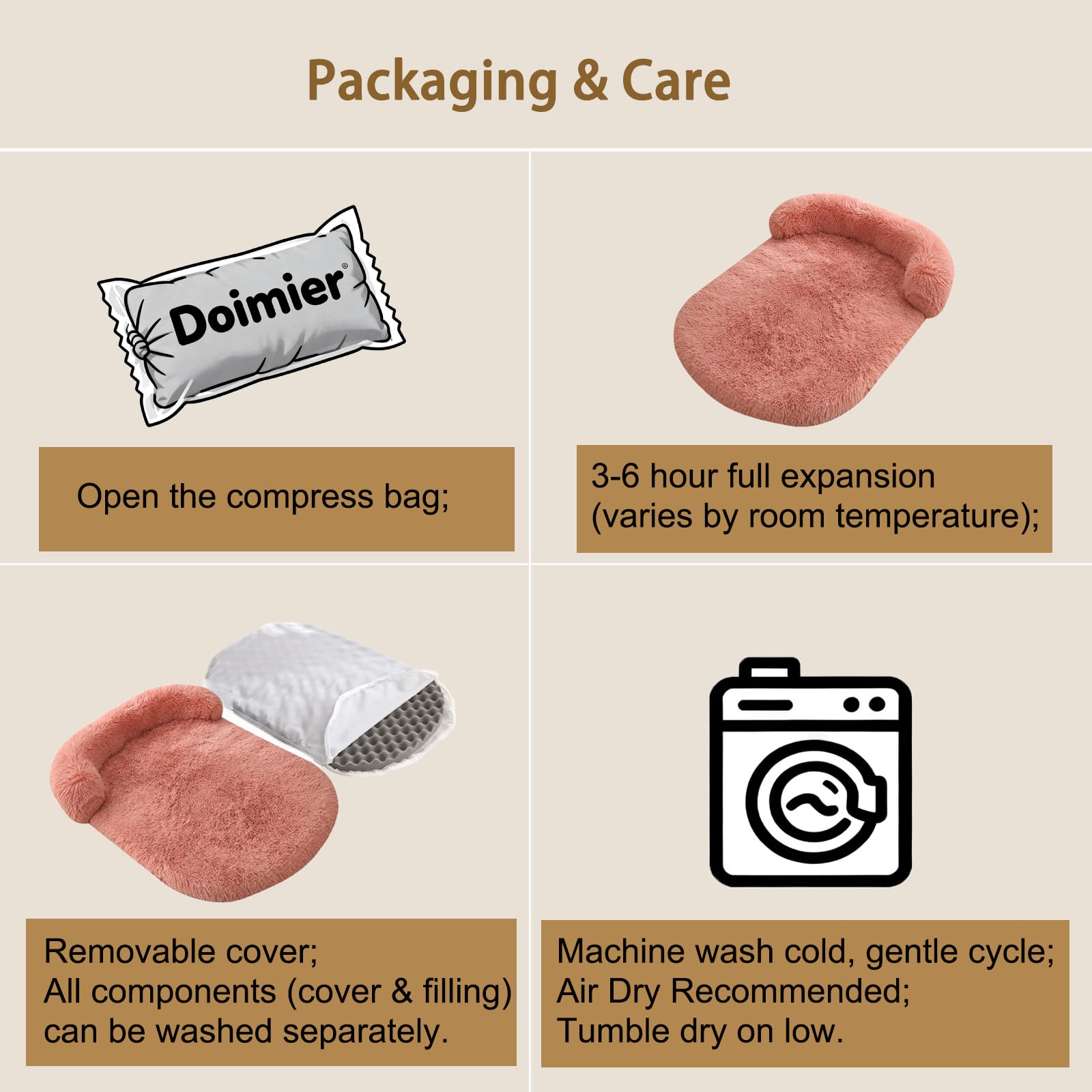Doimier Calming Dog Beds for Medium Large Dogs, Orthopedic Cushion Plush Dogs Lounge Couch Sofa with Washable Removable Cover, Anti-Anxiety Soft Faux Fur Fits up to 40 lbs Pets (Oval, Blush 32″x24″)