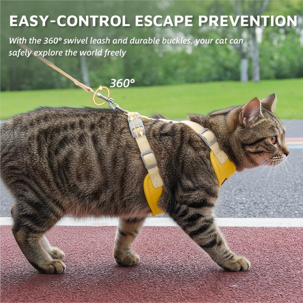 Escape-Proof Cat Harness and Leash Set – Adjustable and Comfortable – Ideal for Walking Cat Outdoors – Fits Small Dogs, Kittens, Medium, and Large Cats (Yellow, S)