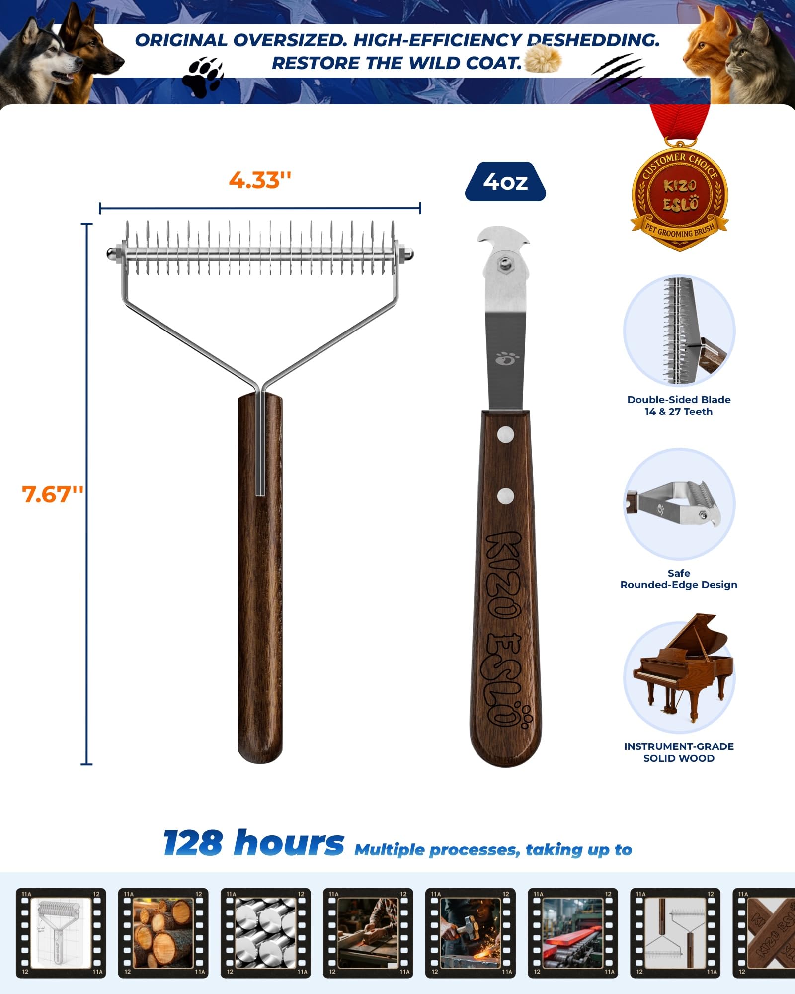 - ☀️【Reduce Shedding Significantly】KIZO ESLO️ double-sided shedding tool quickly demat and detangle pet undercoat rake and effectively reduces shedding by up to 97.9%, keeping your home cleaner and your pet’s coat in excellent condition. Perfect for use during shedding season.