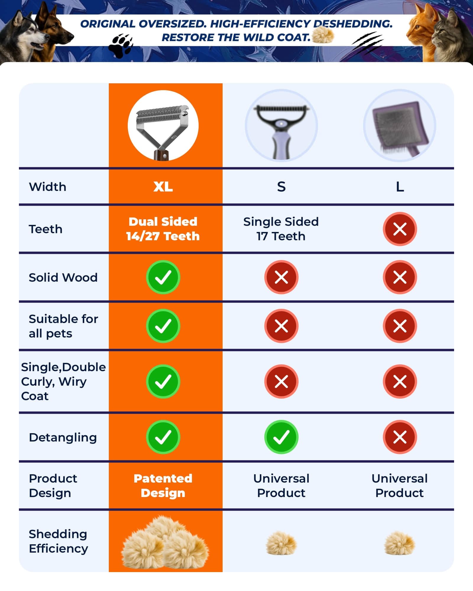 - ⏰【Quick and Efficient Grooming】Save time with our versatile grooming tool. The dual-sided design features a wide-tooth side for tackling tough mats and a fine-tooth side for deshedding and thinning, making grooming faster and easier.
