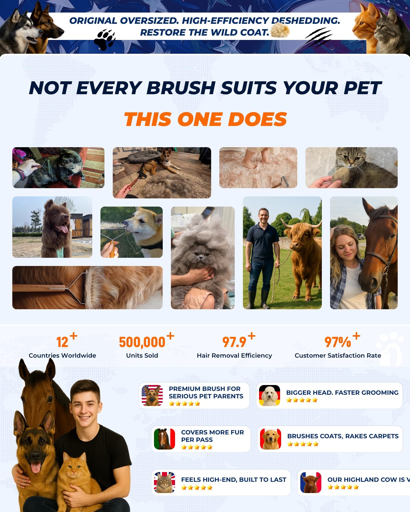 - ✂️【Effortless Mat and Tangle Removal】Easily remove stubborn mats and tangles with KIZO ESLO️ professional-grade extra larger dog brush for deshedding. Designed for both cats and dogs of medium or long coat length, like German Shepherd, Husky, Bernese Mountain Dog, this professional grooming tool ensures a smooth, pain-free grooming experience, leaving your pet’s coat healthy and neat.