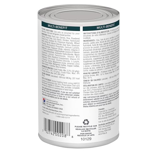 Hill’s Prescription Diet w/d Multi-Benefit Digestive/Weight/Glucose/Urinary Management Vegetable & Chicken Stew Wet Dog Food, Veterinary Diet, 12.5 oz. Cans, 12-Pack