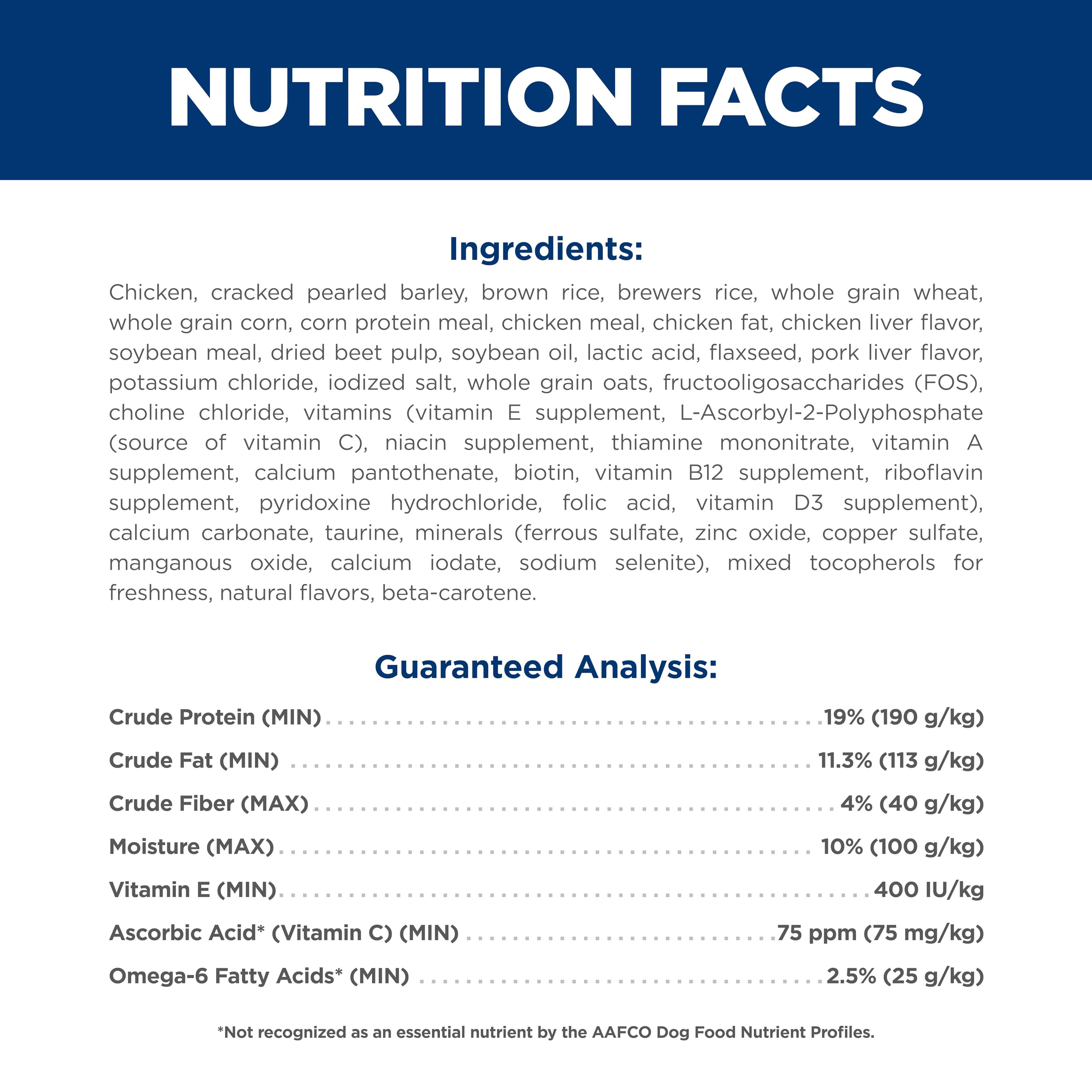 Hill’s uses only high-quality ingredients including real chicken, lamb or salmon protein. Hill’s dry pet foods have quality protein as the first ingredient and provide clinically proven antioxidant benefits. Plus, they’re made with natural ingredients (plus vitamins, minerals & amino acids) and never contain artificial colors, flavors, preservatives or chicken by-product meal.