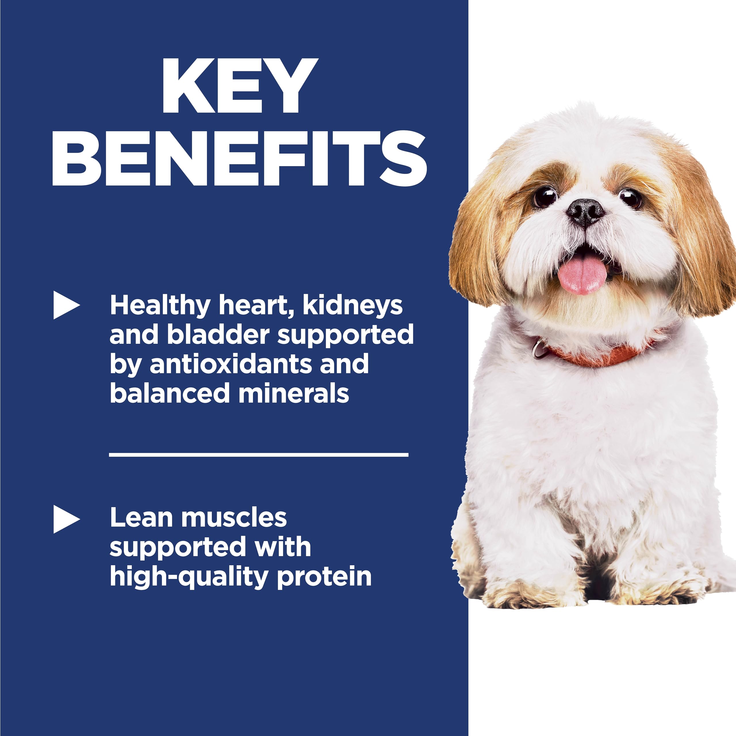 As little or toy breed dogs get older, their nutrition needs change. Hill’s Science Diet Adult 7+ Small Bites dry dog food is formulated for specific aging needs of small dogs age 7 and older. The delicious chicken flavor is packed into a tiny kibble for those little dogs that prefer variety, and the easily digestible ingredients help support the energy levels of mature dogs. This dog food made with natural ingredients contains a balanced set of minerals for immune system support as well as heart and kidney health. To help your dog keep healthy skin and a shiny coat, this premium dog food provides omega-6 fatty acids & Vitamin E. There’s more to love with the new look of Science Diet. Some of our products also have new names, new kibble shapes & new formulas.