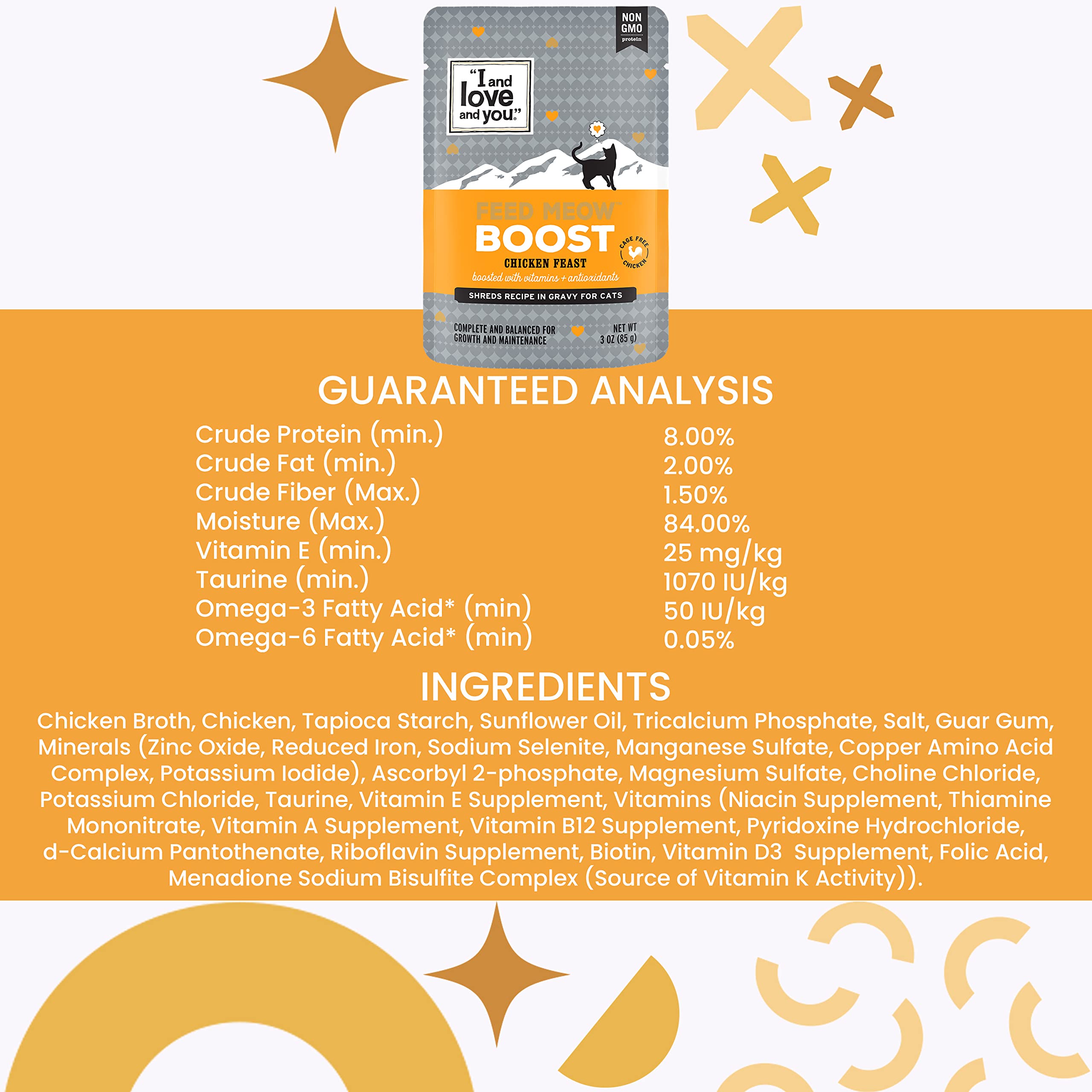 I and love and you Feed Meow Boost Wet Cat Food – Chicken – Antioxidants & Vitamins for Vitality, Grain Free, Shredded, 3oz Pack of 12