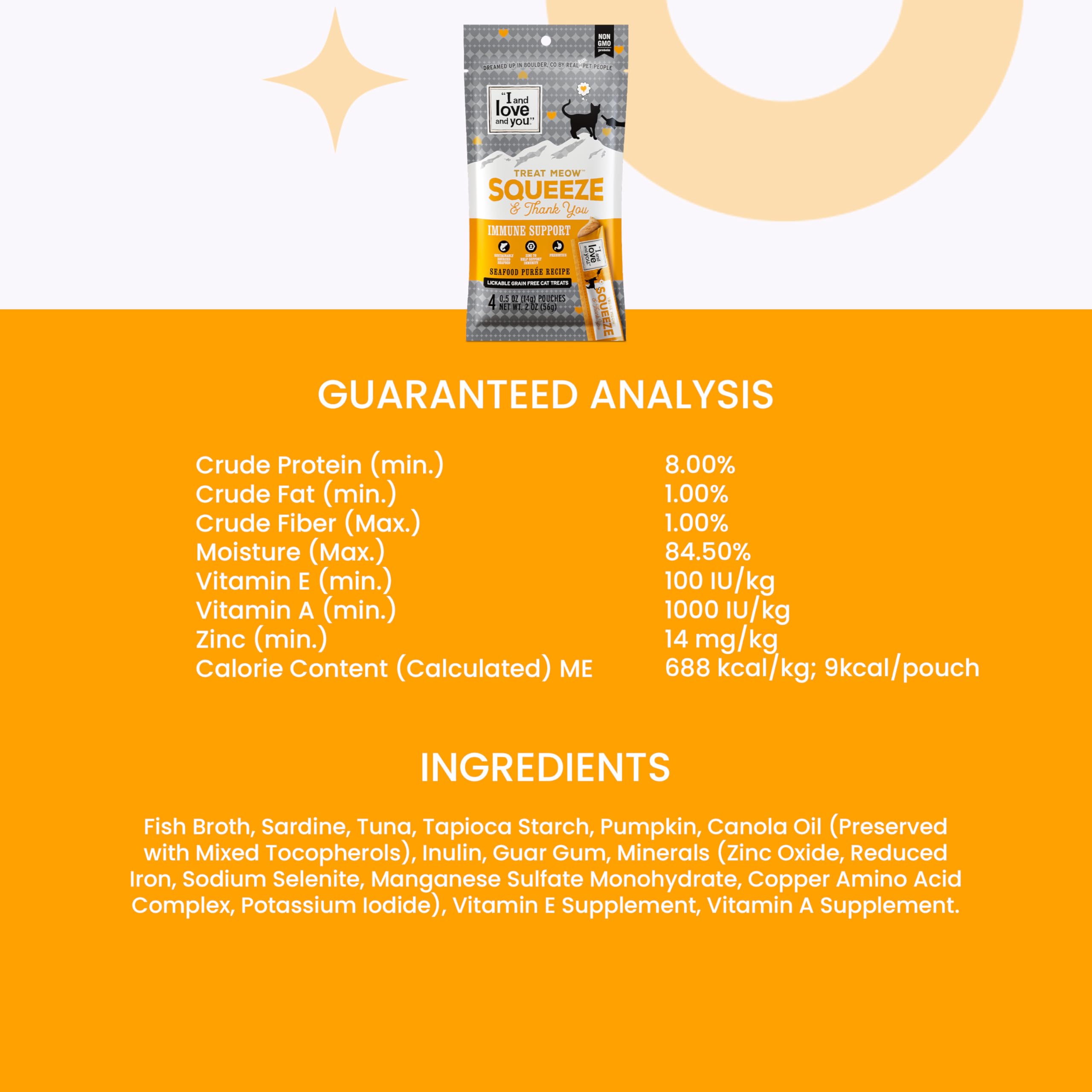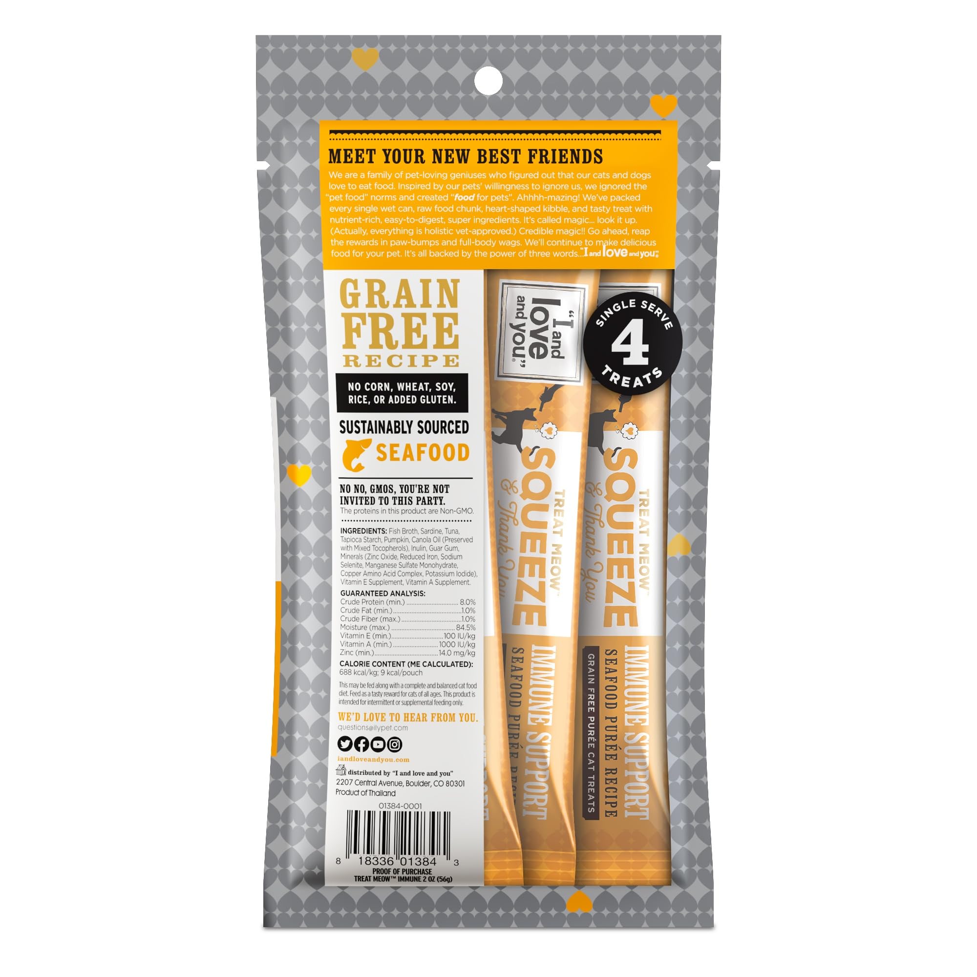 I and Love and You Treat Meow Lickable Cat Treats – Seafood Puree – Immune Support, Squeeze Treat, 0.5oz, 4ct