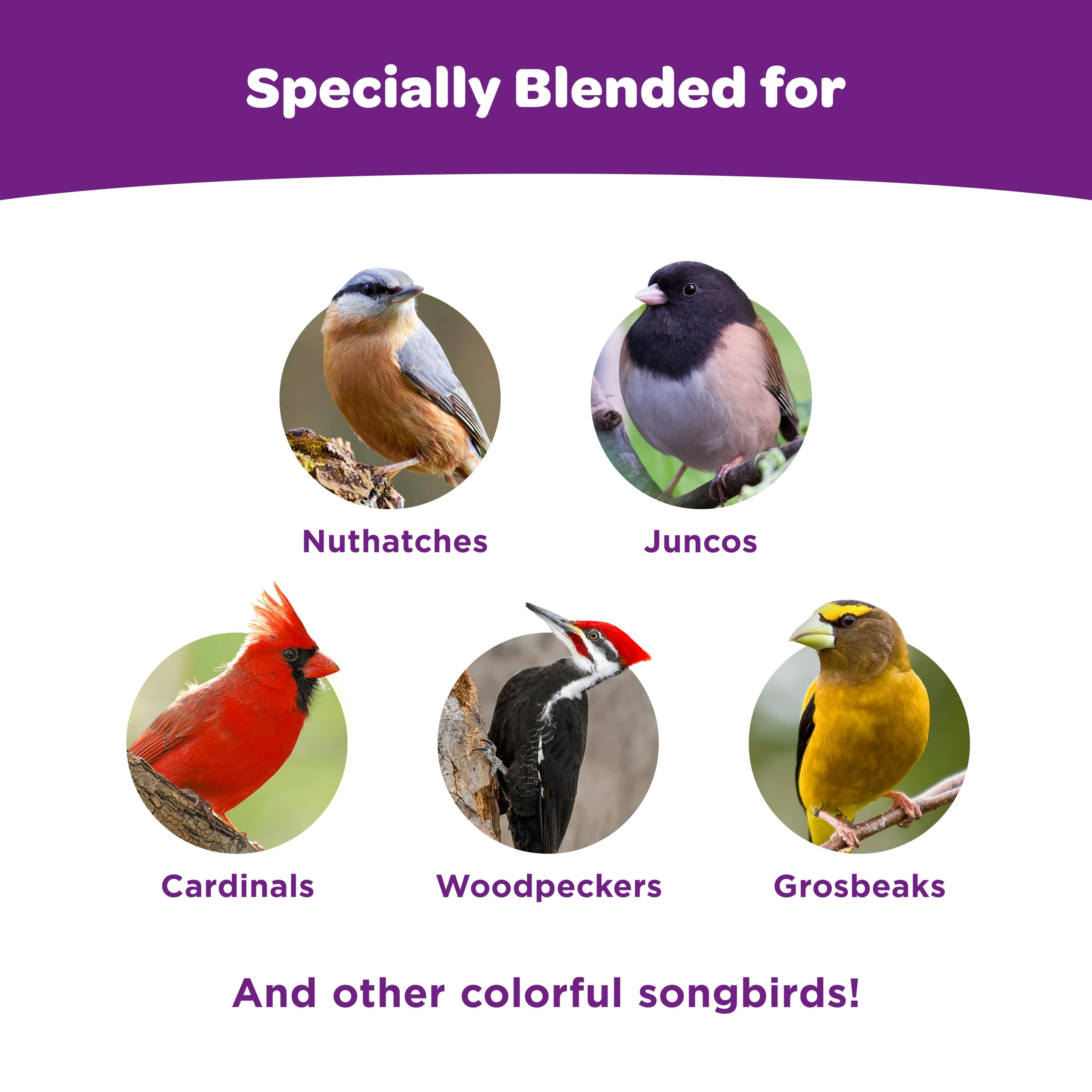 • SPECIALLY BLENDED TO APPEAL TO A VARIETY OF BIRDS like Cardinals, Chickadees, Nuthatches, Grosbeaks, Juncos, Woodpeckers and more!