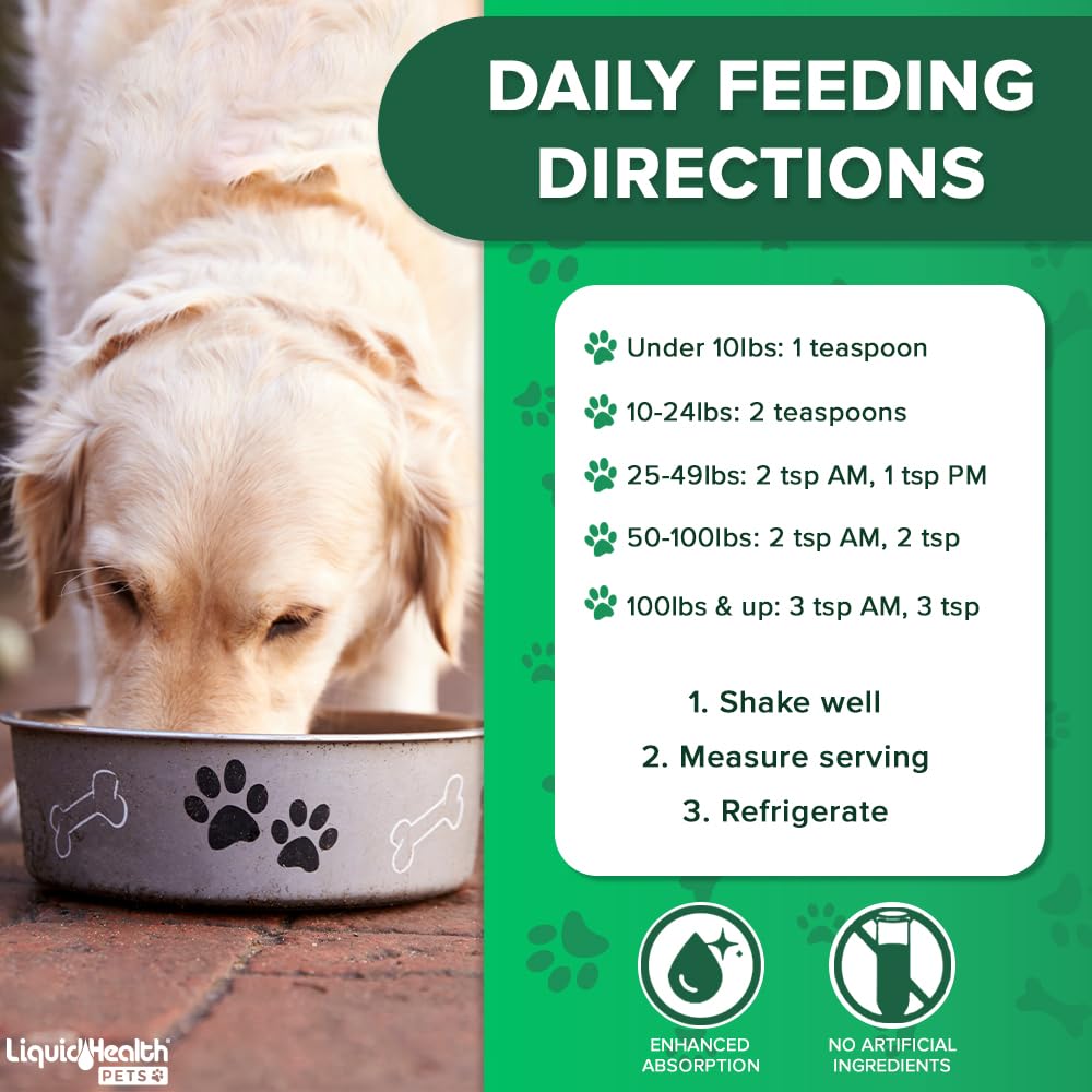 LIQUIDHEALTH Pets K9 Liquid Glucosamine for Dogs, Puppies, Senior Canines with Chondroitin, MSM, Hyaluronic Acid – Dog Vitamins for Hip & Joint Health, Dog Joint Oil, Joint Juice – Made in USA (32 oz)