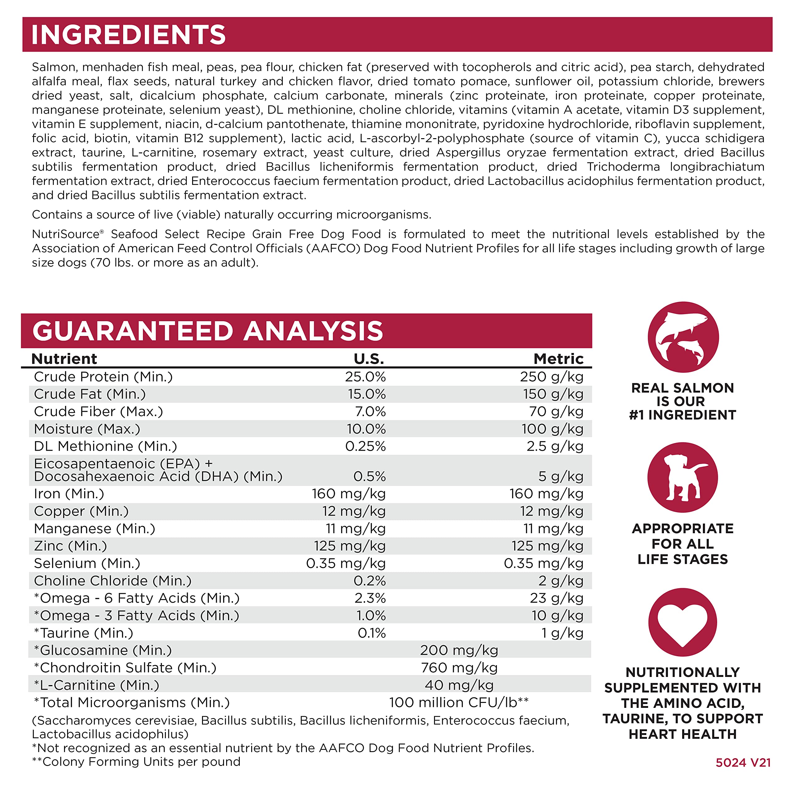 - As a member of our grain free series, NutriSource Seafood Select Dry Dog Food is formulated to meet AAFCO guidelines for all lifestages