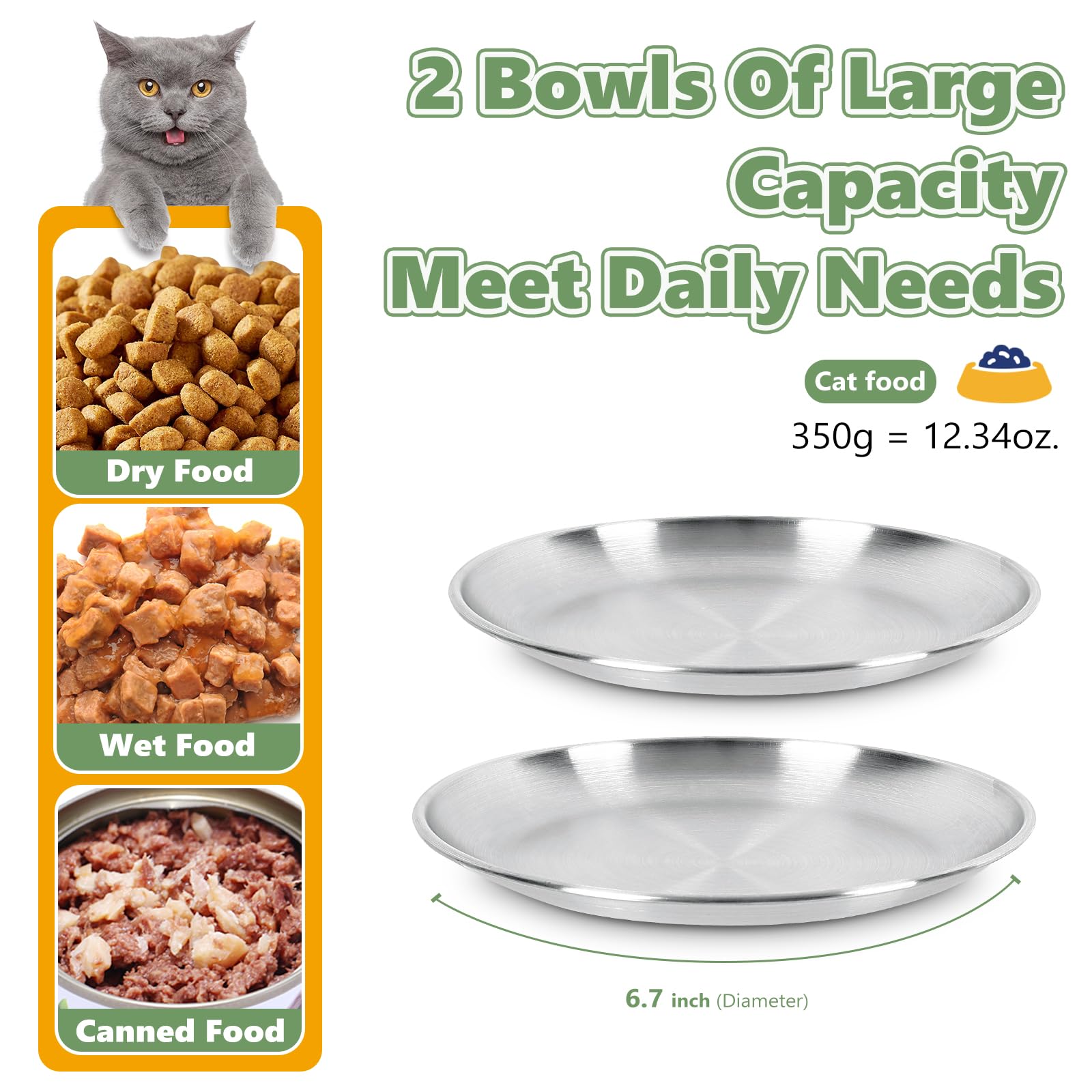 • 🐱[SET OF 4 WIDE BOWLS]: You will receive 4 spacious stainless steel bowls (6.7 inches in diameter). The large capacity and shallow depth are perfect for cats of all sizes and breeds, including kittens and low-profile cats, ensuring comfortable access to food and water.