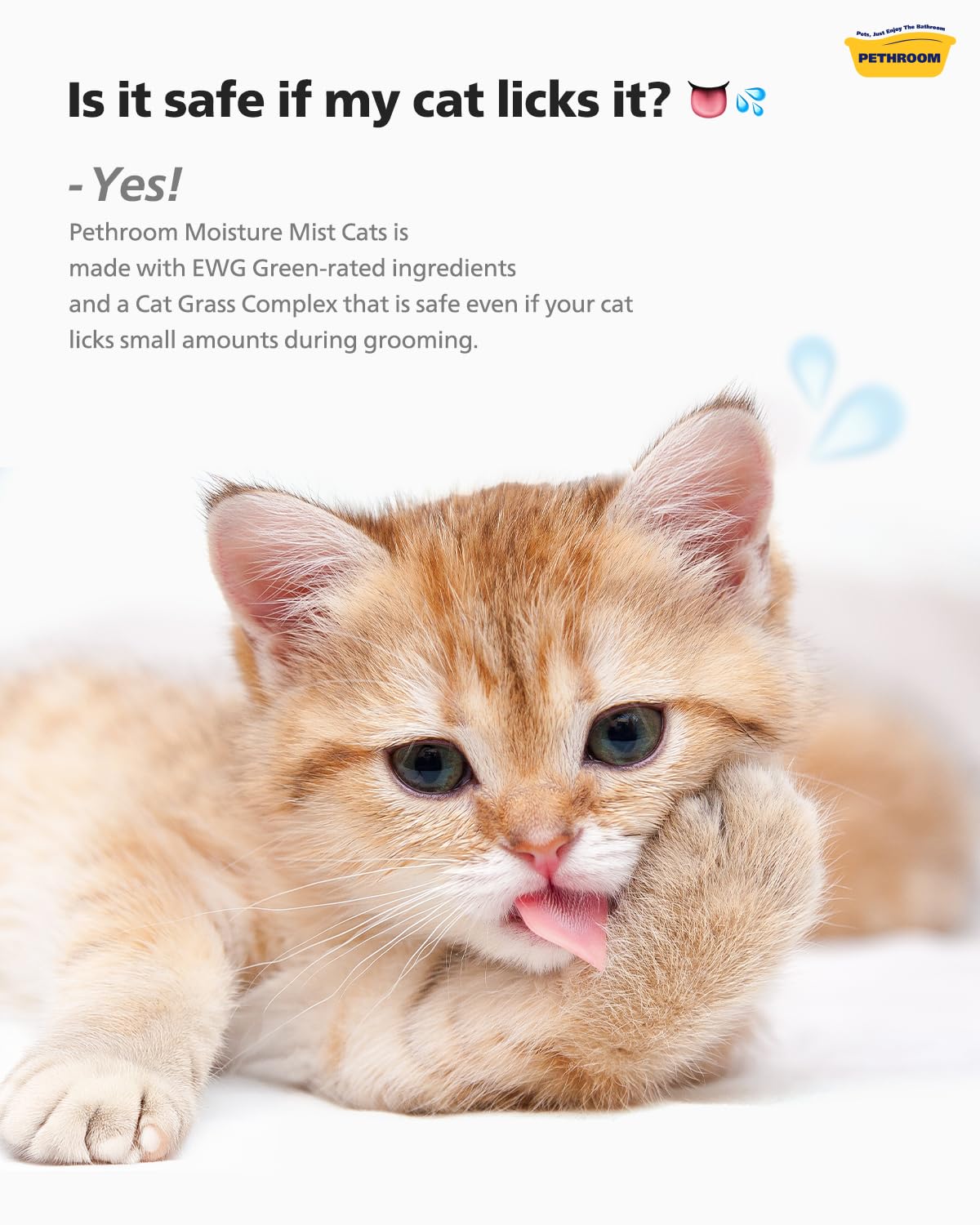 PETHROOM] Unscented Cat Moisture Mist – Natural Leave-In Conditioner Spray for Cats – 95% Plant Extracts– Hydrating, Detangling, Static & Dander Control, 100% EWG Green
